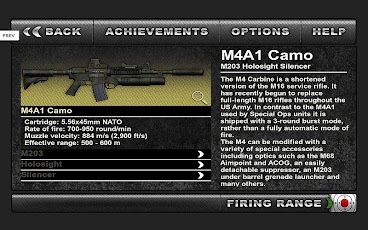 Escolha uma arma de dezenas disponíveis. Examiná-lo dentro de uma visualização interativa 3D e estudar suas especificações - ou experimentá-lo imediatamente! Vários altamente detalhadas de tiro com diferentes modos de jogo esperar para você mostrar o seu melhor. Competir com outros jogadores no ranking online. Desbloquear todas as conquistas.