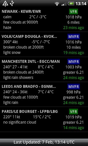 Ver up-to-date METAR e TAF tempo aviação da NOAA em um painel de controle amigável. Ver cru ou decodificada usando métrica ou imperial. AirReport contém um banco de dados embutido de estações meteorológicas em todo o mundo aeroporto que podem ser pesquisados pela ICAO, IATA ou nome.
