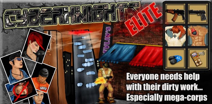 Ciber Knights RPG é um jogo tático Role-Playing turnos (RPG) e foi feito para os fãs do Cyberpunk. Fãs de jogos como Syndicate, Fallout Tactics, Shadowrun para SEGA / SNES, Tempestade Silenciosa e Cyberlords deve aproveitar esta retro RPG baseado em turnos.