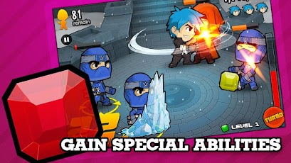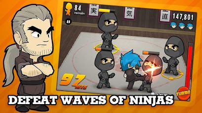 Ondas de batalha de Ninjas, lançar combos enormes, coletar power ups e derrubar qualquer um que fica em seu caminho!