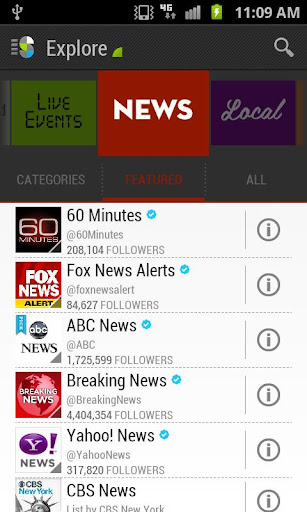 ✪ Live Events - Apenas Slices Pro tem fluxos de evento ao vivo, finalmente, tornando mais fácil acompanhar os acontecimentos ao vivo no Twitter. Cada fluxo exibe um feed de tweets das pessoas "certas" para os acontecimentos de hoje, como esportes, programas de TV e outros acontecimentos.
