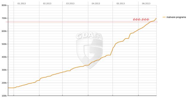 Se você tem medo do apocalipse, fique atento aos sinais: já existem mais de 666.666 malwares únicos para o sistema operacional móvel Android, segundo relatório com dados de junho deste ano divulgado pela G Data Security Labs. O crescimento é espantoso, se considerarmos que o total estava pouco acima dos 150 mil no primeiro mês de 2013.